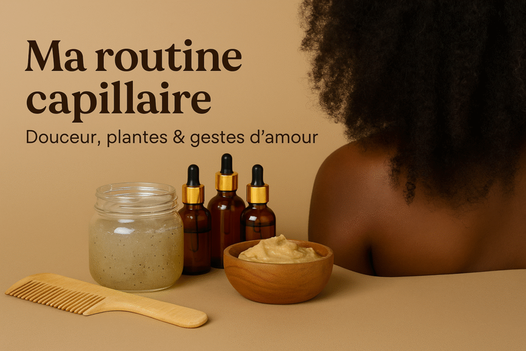 Voici ma routine naturelle pour hydrater mes cheveux crépus : bain d’huiles, gel de lin, poudres ayurvédiques et gestes tendres